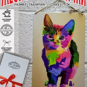 Железная табличка с котиками из 100% металла от нашего бренда будет прекрасным украшением для квартиры, дома, офиса, бара или кафе.