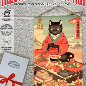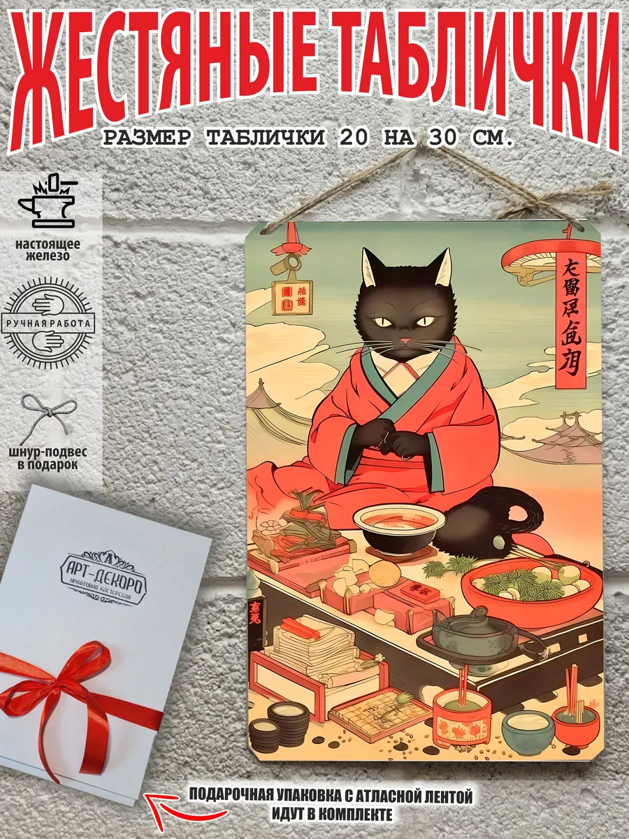 Кот и суши взрывные котята кот батон котофей басик кот рыжий кот коты воители – признанные любимцы взрослых и детей. Железная табличка кухня в японском стиле картина суши из 100% металла от нашего бренда будет прекрасным украшением для квартиры, дома, офиса, бара или кафе. Сочетая в себе эстетику и прочность японский стиль — декоративная металлическая табличка выгляди более стильно чем наклейки коты картины по номерам коты стикеры и является непременным элементом декора как для внутренних помещений, так и для уличных зон. Выберите из нашего широкого ассортимента аксессуар, который подойдет именно вам. Жестяная табличка Арт-Декоро это дом в японском стиле, она крепится на саморезы, шурупы или на специальный шнур из натурального джута который идет в комплекте с каждым заказом как бесплатный подарок, что позволяет разнообразить способы использования. Вы можете повесить на стену в гостиной, спальне, кухне или на улице, чтобы создать атмосферу, которая отражает индивидуальность. Таблички можно мыть, они не выцветают долгие годы. Картина открытки постер плакат коты питерские парижские коты все это сочетается в наших изделиях. У нас представлены картины коты которые создала нейросеть. Мы гордимся тем, что каждая табличка изготовлена из настоящего металла, краска наносится прямо на железо. Это гарантирует ее долговечность и надежность. Красивая и изысканная отделка обеспечивает эффектный внешний вид и придает обстановке особое очарование. Подарите возможность добавить изюминку в интерьер и превратите пространство в уникальное, а также уютное место, которое будет отличаться от всех остальных. В нашем магазине Вы найдёте большой выбор декора интерьера и создадите превосходную обстановку.
