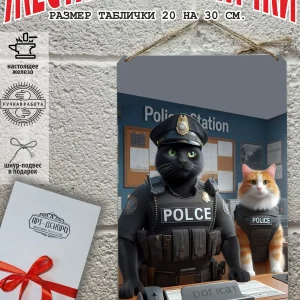 Представляем вам стильные и эффектные жестяные таблички и картины, в том числе удивительные изображения котов на картинах художников. Все наши постеры, включая жестяные таблички, выполнены из высококачественного металла, обеспечивающего долговечность и устойчивость к солнечному свету. Размер 20×30 см позволяет легко интегрировать их в любой интерьер – будь то кухня, гостиная, офис или кафе.