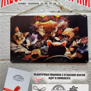 Железная табличка с котиками из 100% металла от нашего бренда будет прекрасным украшением для квартиры, дома, офиса, бара или кафе.