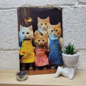 Представляем вам стильные и эффектные жестяные таблички и картины, в том числе удивительные изображения котов на картинах художников. Все наши постеры, включая жестяные таблички, выполнены из высококачественного металла, обеспечивающего долговечность и устойчивость к солнечному свету. Размер 20×30 см позволяет легко интегрировать их в любой интерьер – будь то кухня, гостиная, офис или кафе.