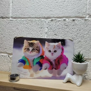 Представляем вам стильные и эффектные жестяные таблички и картины, в том числе удивительные изображения котов на картинах художников. Все наши постеры, включая жестяные таблички, выполнены из высококачественного металла, обеспечивающего долговечность и устойчивость к солнечному свету. Размер 20×30 см позволяет легко интегрировать их в любой интерьер – будь то кухня, гостиная, офис или кафе.