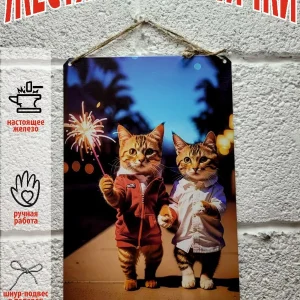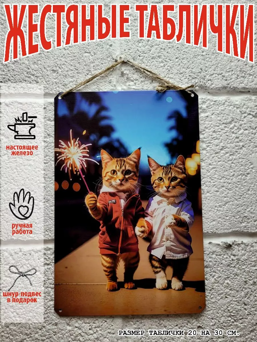 Представляем вам стильные и эффектные жестяные таблички и картины, в том числе удивительные изображения котов на картинах художников. Все наши постеры, включая жестяные таблички, выполнены из высококачественного металла, обеспечивающего долговечность и устойчивость к солнечному свету. Размер 20×30 см позволяет легко интегрировать их в любой интерьер – будь то кухня, гостиная, офис или кафе.