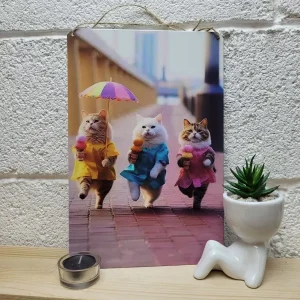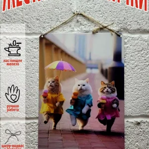 Представляем вам стильные и эффектные жестяные таблички и картины, в том числе удивительные изображения котов на картинах художников. Все наши постеры, включая жестяные таблички, выполнены из высококачественного металла, обеспечивающего долговечность и устойчивость к солнечному свету. Размер 20×30 см позволяет легко интегрировать их в любой интерьер – будь то кухня, гостиная, офис или кафе.