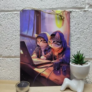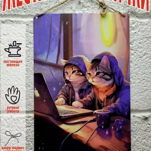 Представляем вам стильные и эффектные жестяные таблички и картины, в том числе удивительные изображения котов на картинах художников. Все наши постеры, включая жестяные таблички, выполнены из высококачественного металла, обеспечивающего долговечность и устойчивость к солнечному свету. Размер 20×30 см позволяет легко интегрировать их в любой интерьер – будь то кухня, гостиная, офис или кафе.