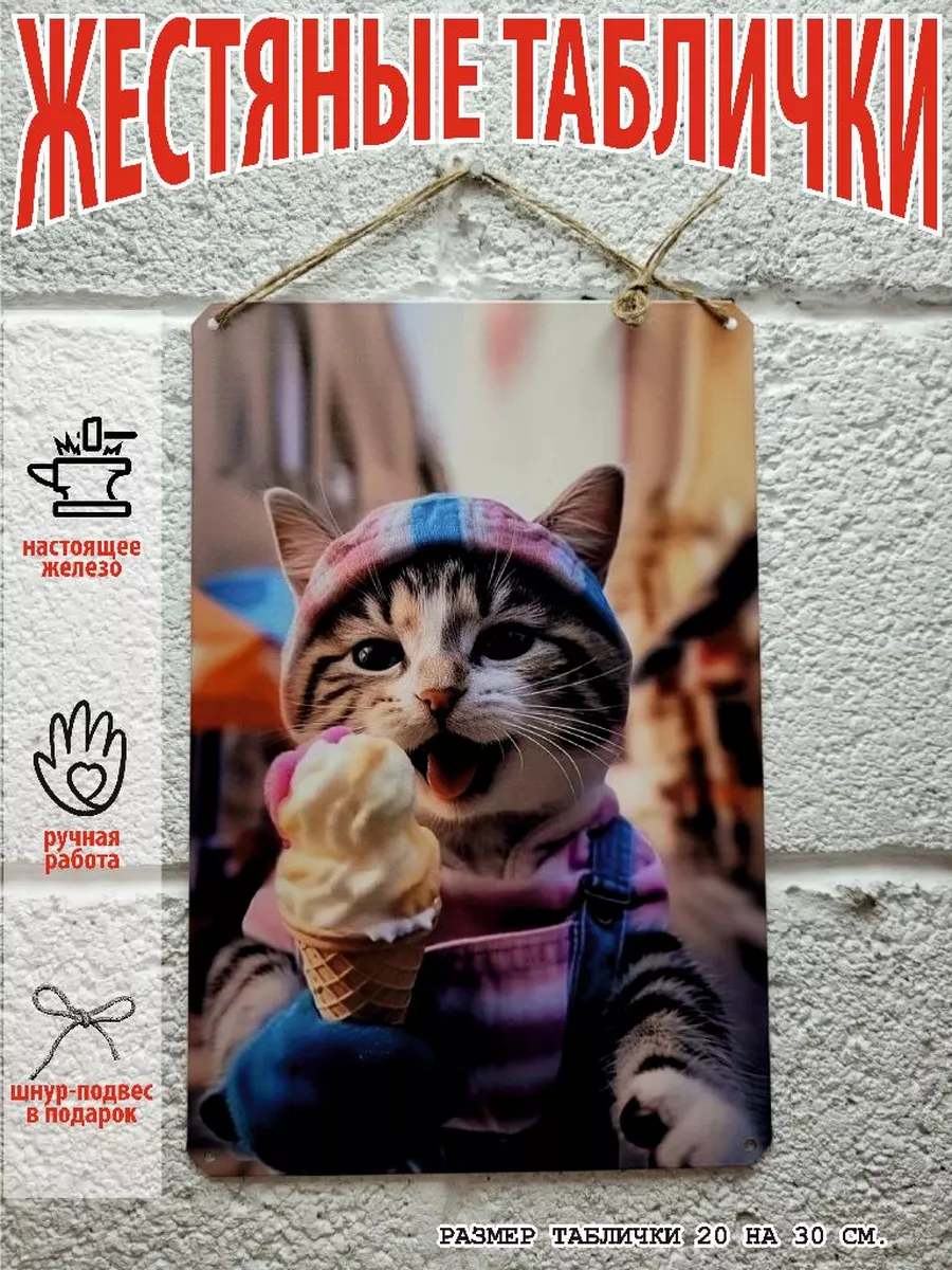 Представляем вам стильные и эффектные жестяные таблички и картины, в том числе удивительные изображения котов на картинах художников. Все наши постеры, включая жестяные таблички, выполнены из высококачественного металла, обеспечивающего долговечность и устойчивость к солнечному свету. Размер 20×30 см позволяет легко интегрировать их в любой интерьер – будь то кухня, гостиная, офис или кафе.