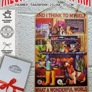 И я думаю про себя: «какой чудесный мир! Железная табличка с котиками из 100% металла от нашего бренда будет прекрасным украшением для квартиры, дома, офиса, бара или кафе.