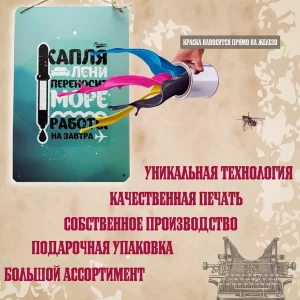 Жестяная табличка Арт-Декоро крепится на саморезы, шурупы или на специальный шнур из натурального джута который идет в комплекте с каждым заказом как бесплатный подарок, что позволяет разнообразить способы использования. Вы можете повесить на стену в гостиной, спальне, кухне или на улице, чтобы создать атмосферу, которая отражает индивидуальность. Таблички можно мыть, они не выцветают долгие годы.