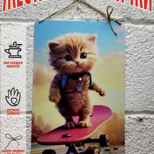 Представляем вам стильные и эффектные жестяные таблички и картины, в том числе удивительные изображения котов на картинах художников. Все наши постеры, включая жестяные таблички, выполнены из высококачественного металла, обеспечивающего долговечность и устойчивость к солнечному свету. Размер 20×30 см позволяет легко интегрировать их в любой интерьер – будь то кухня, гостиная, офис или кафе.