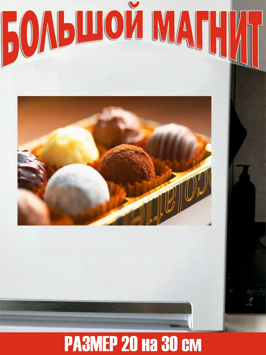 Только наши большие магниты можно мыть, они не выцветают долгие годы. Магнит плакаты плитка шоколада, белый шоколад, какао бобы, конфеты, корица и орехи — все это сочетается в наших изделиях. Мы гордимся тем, что изображение наносится прямо на магнит — это новая технология. Это не наклейка, что гарантирует ее долговечность и надежность, при этом магнит можно всегда снять, он не оставляет следов.
