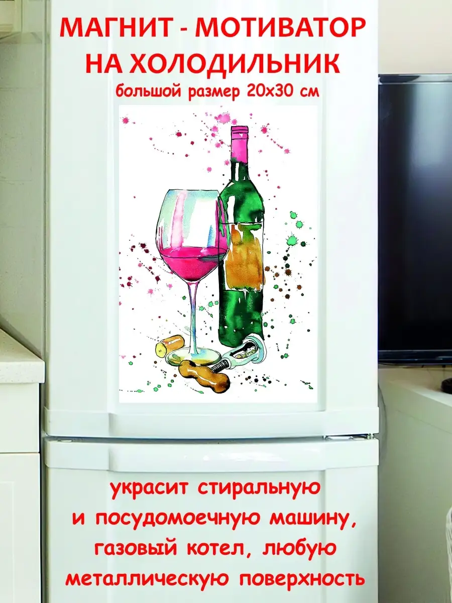 элемент декора, сувенир на магнитной основе, как правило, прикрепляемый к кухонной бытовой технике. Магнит на холодильник вино лучший недорогой подарок от нашего бренда будет прекрасным украшением для квартиры, дома, офиса, бара или кафе.