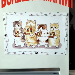 Только наши большие магниты можно мыть, они не выцветают долгие годы. Магнит плакаты про котиков и прикольные надписи на магнитах — все это сочетается в наших изделиях. Мы гордимся тем, что изображение наносится прямо на магнит — это новая технология. Это не наклейка, что гарантирует ее долговечность и надежность, при этом магнит можно всегда снять, он не оставляет следов.