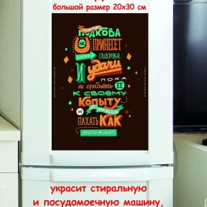 Магнит на холодильник смешной, прикольные штуки картинки мотиваторы позитивные и демотиваторы от нашего бренда будет прекрасным украшением для квартиры, дома, офиса, бара или кафе. Мотивация магнит прикол, часть нашей жизни, картина мотиватор всегда улучшает настроение. Сочетая в себе эстетику и прочность, магниты на холодильник большие мотивационные карточки являются непременным элементом декора как для внутренних помещений, так и для уличных зон. Магнитный мотивационный плакат украсит ваш холодильник, газовый котел, стиральную машину, железную дверь, а так же любую металлическую поверхность. Только наши большие магниты можно мыть, они не выцветают долгие годы. Картина открытки постер плакат стикеры наклейки приколы мотивация все это сочетается в наших изделиях. Мы гордимся тем, что изображение наносится прямо на магнит это новая технология. Это не наклейка, что гарантирует ее долговечность и надежность, при этом магнит можно всегда снять, он не оставляет следов. Большой гибкий магнит мотивация имеет размер 20 на 30 см. Обратите внимание! У нас все таблички-магниты идут сериями, можно создать отличную композицию в одном стиле. Кроме того, таблички — это стильный и недорогой подарок по любому поводу.
