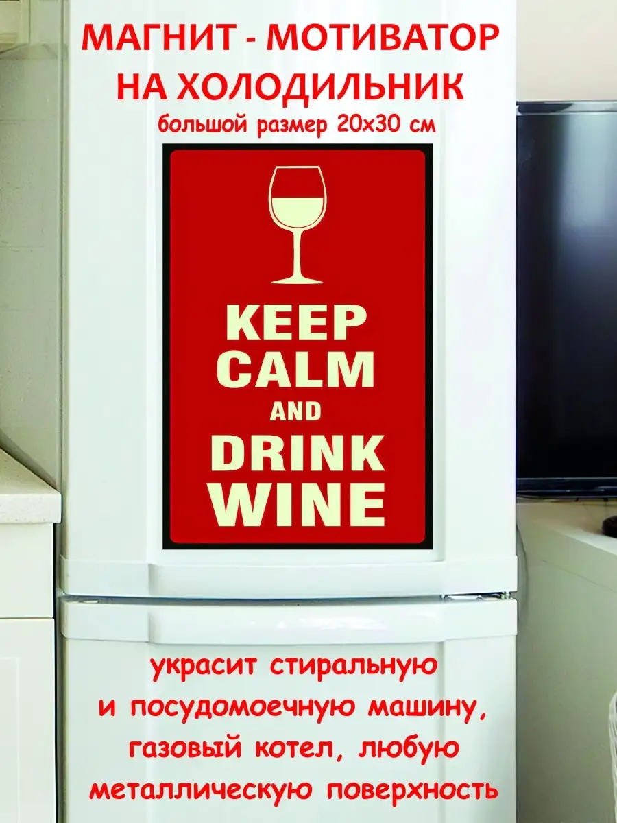 Магнит большой сохраняй спокойствие и пей вино