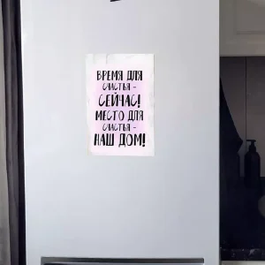 Только наши магниты можно мыть, они не выцветают долгие годы. Плакаты правила семьи, основные семейные правила, прикольные надписи на магнитах — все это сочетается в наших изделиях. Мы гордимся тем, что изображение наносится прямо на магнит — это новая технология. Это не наклейка, что гарантирует ее долговечность и надежность, при этом магнит можно всегда снять, он не оставляет следов.