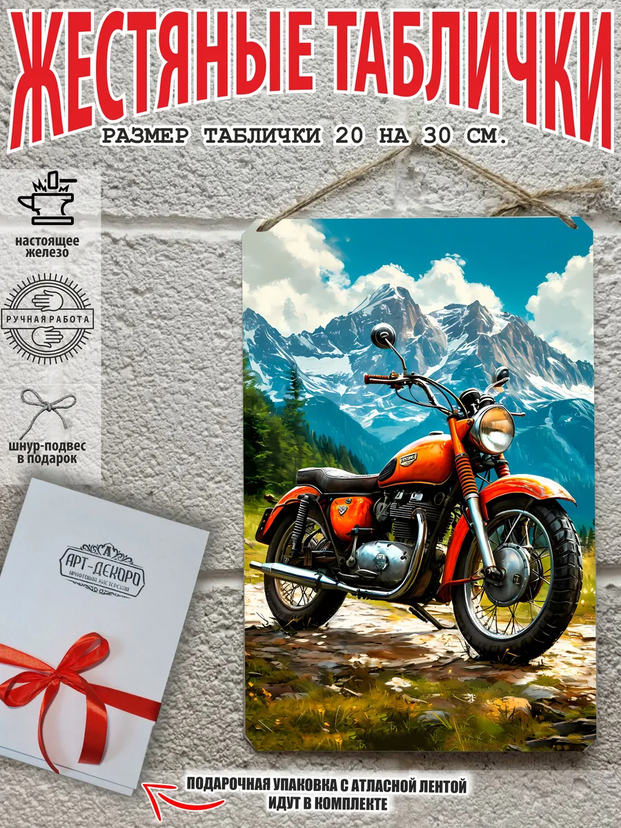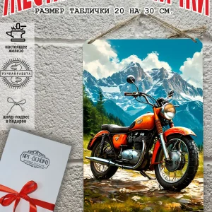 Декоративная табличка «Мотоцикл» от бренда МОТОтематика станет стильным украшением интерьера для настоящих ценителей двухколесной техники. Изготовленная из прочного металла, табличка имеет прямоугольную форму и оснащена удобным шнуром-подвесом из натурального джута. Табличка поставляется в эко-упаковке из картона, что делает ее идеальным подарком для друзей и близких, увлеченных мотоциклами. Прикрепите ее на стену в гараже, гостиной или на кухне, чтобы добавить интерьеру уникальный штрих. Уникальный авторский дизайн от нашего нейрохудожника.
