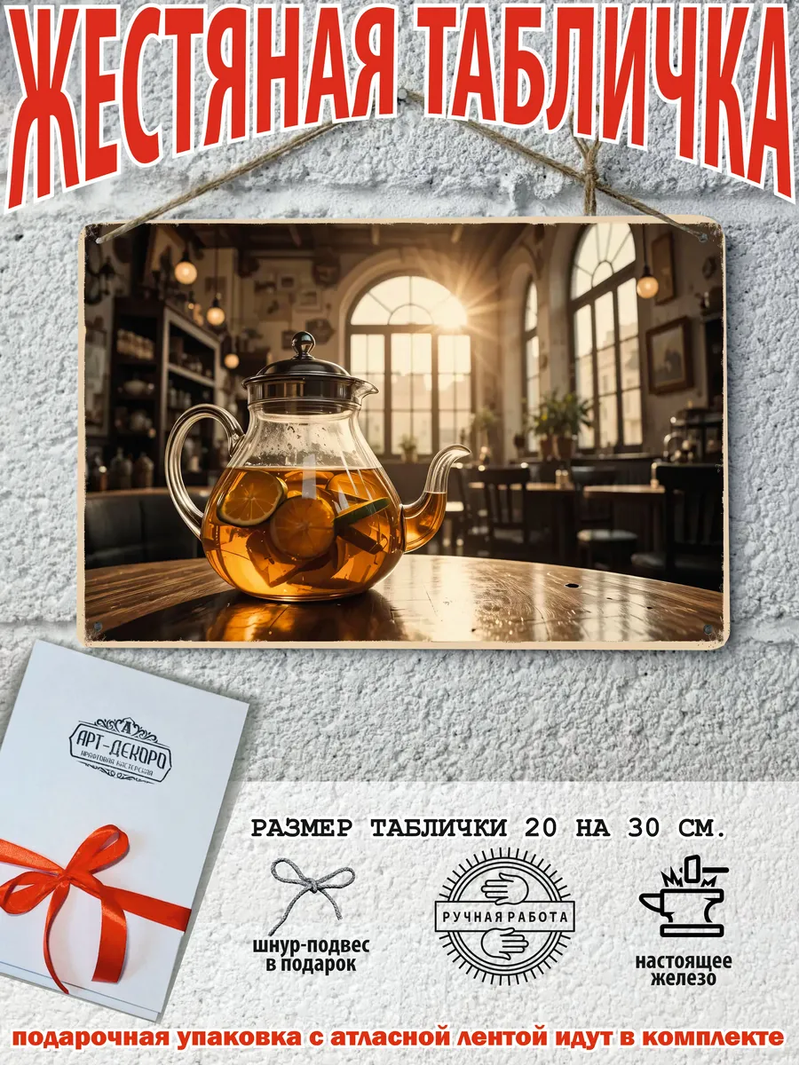 Металлическая интерьерная табличка Чай 20x30 см