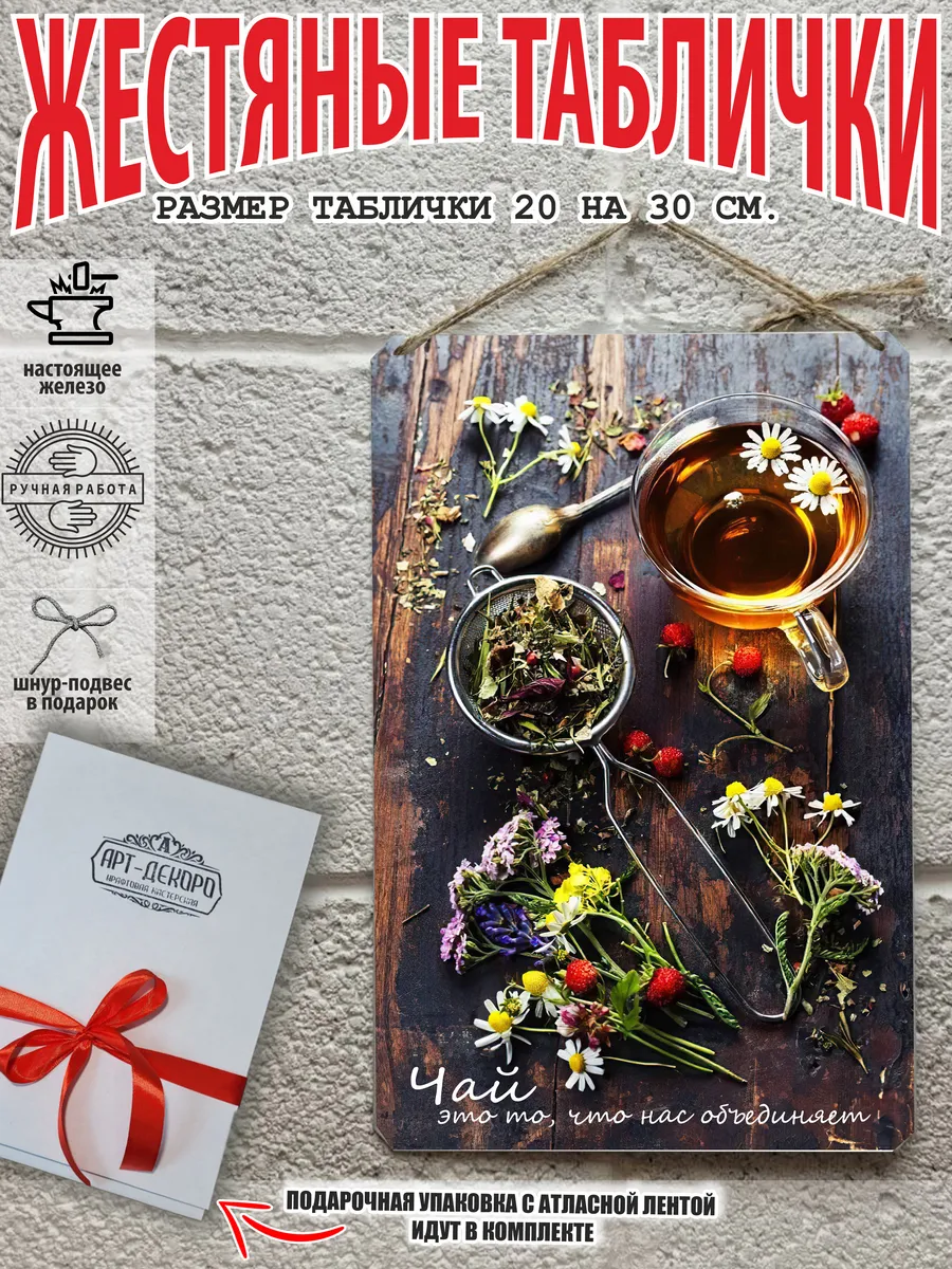 Металлическая интерьерная табличка Чай 20x30 см