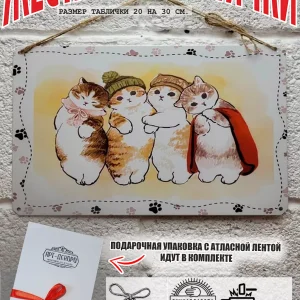 Постер «Милые котики» станет отличным подарком для друзей, коллег или родных. В комплекте с постером идут: табличка, шнур-подвес из натурального джута, гриппер для защиты от царапин, транспортировочная упаковка из картона, упаковка для подарка из картона, атласная лента и открытка.