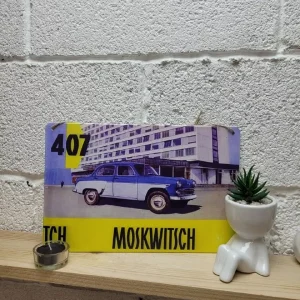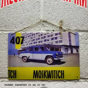 Железная табличка Москвич из 100% металла от нашего бренда будет прекрасным украшением для квартиры, дома, офиса, бара или кафе.