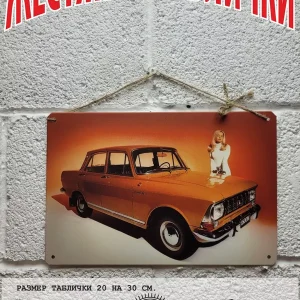 Железная табличка Москвич из 100% металла от нашего бренда будет прекрасным украшением для квартиры, дома, офиса, бара или кафе.