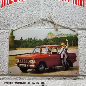 Железная табличка Москвич из 100% металла от нашего бренда будет прекрасным украшением для квартиры, дома, офиса, бара или кафе.