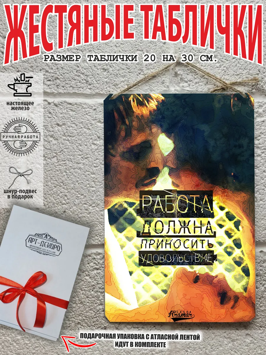 Обратите внимание! У нас все таблички идут сериями, можно создать отличную композицию в одном стиле. Кроме того, таблички это стильный и недорогой подарок по любому поводу. Прикольные штуки железная табличка картинки мотиваторы позитивные и демотиваторы из 100% металла от нашего бренда будет прекрасным украшением для квартиры, дома, офиса, бара или кафе. Мотивация это прикол, часть нашей жизни, картина мотиватор всегда улучшает настроение. Сочетая в себе эстетику и прочность, декоративная металлические мотивационные карточки являются непременным элементом декора как для внутренних помещений, так и для уличных зон. Выберите из нашего широкого ассортимента аксессуар, который подойдет именно вам. Жестяная табличка Арт-Декоро крепится на саморезы, шурупы или на специальный шнур из натурального джута который идет в комплекте с каждым заказом как бесплатный подарок, что позволяет разнообразить способы использования. Плакаты с приколами можно повесить на стену в гостиной, спальне, кухне или на улице, чтобы создать атмосферу, которая отражает индивидуальность. Таблички можно мыть, они не выцветают долгие годы. Картина открытки постер плакат стикеры наклейки приколы мотивация все это сочетается в наших изделиях. Мы гордимся тем, что каждое изделие изготовлено из настоящего металла, краска наносится прямо на железо. Это гарантирует ее долговечность и надежность. Красивая и изысканная отделка обеспечивает эффектный внешний вид и придает обстановке особое очарование. Подарите возможность добавить изюминку в интерьер и превратите пространство в уникальное, а также уютное место, которое будет отличаться от всех остальных. В нашем магазине Вы найдёте большой выбор декора интерьера и создадите превосходную обстановку.