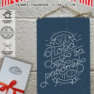 В упакованной эко-коробочке из картона тебя ждет особенный подарочный постер. Этот гифт бокс станет идеальным сюрпризом для близкого человека на любое событие. Жестяная табличка, выполненная из 100% металла, дополнена мотивирующей цитатой. Размеры постера — 20 см х 30 см. Он станет оригинальным украшением для дома и отличным мотиватором.