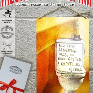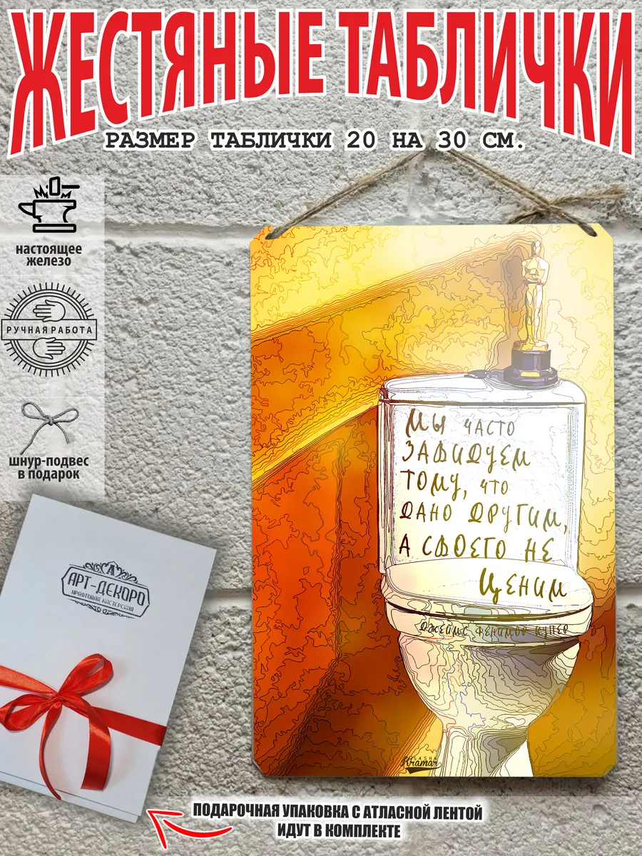 Мы часто завидуем тому, что дано другим, а своего не ценимиз 100% металла от нашего бренда будет прекрасным украшением для квартиры, дома, офиса, бара или кафе. Мотивация это прикол, часть нашей жизни, картина мотиватор всегда улучшает настроение. Сочетая в себе эстетику и прочность, декоративная металлические мотивационные карточки являются непременным элементом декора как для внутренних помещений например для ванной комнаты и туалета, так и для уличных зон. Выберите из нашего широкого ассортимента аксессуар, который подойдет именно вам. Жестяная табличка Арт-Декоро крепится на саморезы, шурупы или на специальный шнур из натурального джута который идет в комплекте с каждым заказом как бесплатный подарок, что позволяет разнообразить способы использования. Плакат-цитата джеймс фенимор купер можно повесить на стену в гостиной, спальне, кухне или на улице, чтобы создать атмосферу, которая отражает индивидуальность. Таблички можно мыть, они не выцветают долгие годы. Картина открытки постер плакат стикеры наклейки приколы мотивация все это сочетается в наших изделиях. Мы гордимся тем, что каждое изделие изготовлено из настоящего металла, краска наносится прямо на железо. Это гарантирует ее долговечность и надежность. Красивая и изысканная отделка обеспечивает эффектный внешний вид и придает обстановке особое очарование. Подарите возможность добавить изюминку в интерьер и превратите пространство в уникальное, а также уютное место, которое будет отличаться от всех остальных. В нашем магазине Вы найдёте большой выбор декора интерьера и создадите превосходную обстановку.