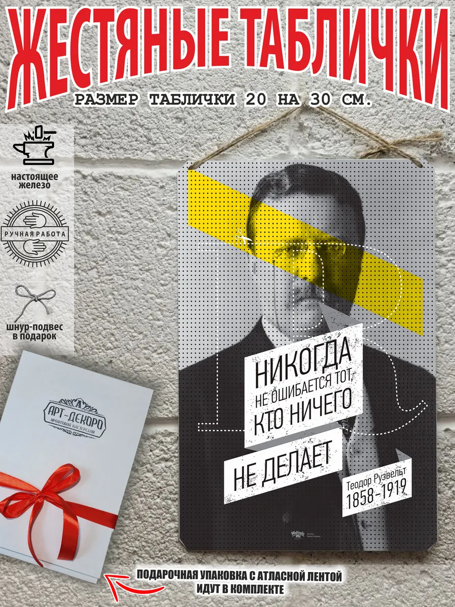 Обратите внимание! У нас все таблички идут сериями, можно создать отличную композицию в одном стиле. Кроме того, таблички это стильный и недорогой подарок по любому поводу. Прикольные штуки железная табличка картинки мотиваторы позитивные и демотиваторы из 100% металла от нашего бренда будет прекрасным украшением для квартиры, дома, офиса, бара или кафе. Мотивация это прикол, часть нашей жизни, картина мотиватор всегда улучшает настроение. Сочетая в себе эстетику и прочность, декоративная металлические мотивационные карточки являются непременным элементом декора как для внутренних помещений, так и для уличных зон. Выберите из нашего широкого ассортимента аксессуар, который подойдет именно вам. Жестяная табличка Арт-Декоро крепится на саморезы, шурупы или на специальный шнур из натурального джута который идет в комплекте с каждым заказом как бесплатный подарок, что позволяет разнообразить способы использования. Плакаты с приколами можно повесить на стену в гостиной, спальне, кухне или на улице, чтобы создать атмосферу, которая отражает индивидуальность. Таблички можно мыть, они не выцветают долгие годы. Картина открытки постер плакат стикеры наклейки приколы мотивация все это сочетается в наших изделиях. Мы гордимся тем, что каждое изделие изготовлено из настоящего металла, краска наносится прямо на железо. Это гарантирует ее долговечность и надежность. Красивая и изысканная отделка обеспечивает эффектный внешний вид и придает обстановке особое очарование. Подарите возможность добавить изюминку в интерьер и превратите пространство в уникальное, а также уютное место, которое будет отличаться от всех остальных. В нашем магазине Вы найдёте большой выбор декора интерьера и создадите превосходную обстановку.