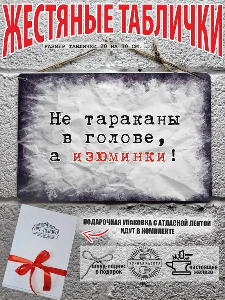 Обратите внимание! У нас все таблички идут сериями, можно создать отличную композицию в одном стиле. Кроме того, таблички это стильный и недорогой подарок по любому поводу. Прикольные штуки железная табличка картинки мотиваторы позитивные и демотиваторы из 100% металла от нашего бренда будет прекрасным украшением для квартиры, дома, офиса, бара или кафе. Мотивация это прикол, часть нашей жизни, картина мотиватор всегда улучшает настроение. Сочетая в себе эстетику и прочность, декоративная металлические мотивационные карточки являются непременным элементом декора как для внутренних помещений, так и для уличных зон. Выберите из нашего широкого ассортимента аксессуар, который подойдет именно вам. Жестяная табличка Арт-Декоро крепится на саморезы, шурупы или на специальный шнур из натурального джута который идет в комплекте с каждым заказом как бесплатный подарок, что позволяет разнообразить способы использования. Плакаты с приколами можно повесить на стену в гостиной, спальне, кухне или на улице, чтобы создать атмосферу, которая отражает индивидуальность. Таблички можно мыть, они не выцветают долгие годы. Картина открытки постер плакат стикеры наклейки приколы мотивация все это сочетается в наших изделиях. Мы гордимся тем, что каждое изделие изготовлено из настоящего металла, краска наносится прямо на железо. Это гарантирует ее долговечность и надежность. Красивая и изысканная отделка обеспечивает эффектный внешний вид и придает обстановке особое очарование. Подарите возможность добавить изюминку в интерьер и превратите пространство в уникальное, а также уютное место, которое будет отличаться от всех остальных. В нашем магазине Вы найдёте большой выбор декора интерьера и создадите превосходную обстановку.