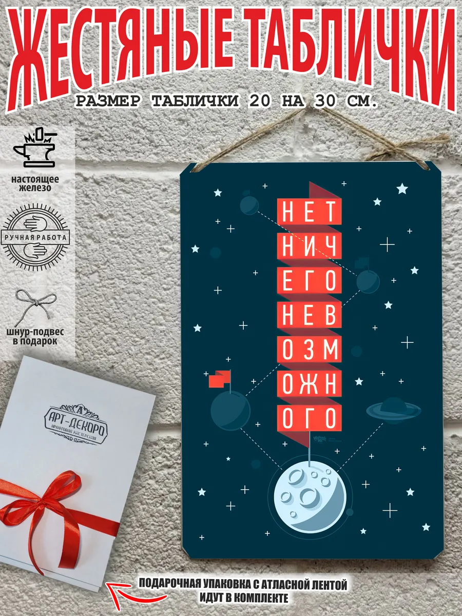 Обратите внимание! У нас все таблички идут сериями, можно создать отличную композицию в одном стиле. Кроме того, таблички это стильный и недорогой подарок по любому поводу. Прикольные штуки железная табличка картинки мотиваторы позитивные и демотиваторы из 100% металла от нашего бренда будет прекрасным украшением для квартиры, дома, офиса, бара или кафе. Мотивация это прикол, часть нашей жизни, картина мотиватор всегда улучшает настроение. Сочетая в себе эстетику и прочность, декоративная металлические мотивационные карточки являются непременным элементом декора как для внутренних помещений, так и для уличных зон. Выберите из нашего широкого ассортимента аксессуар, который подойдет именно вам. Жестяная табличка Арт-Декоро крепится на саморезы, шурупы или на специальный шнур из натурального джута который идет в комплекте с каждым заказом как бесплатный подарок, что позволяет разнообразить способы использования. Плакаты с приколами можно повесить на стену в гостиной, спальне, кухне или на улице, чтобы создать атмосферу, которая отражает индивидуальность. Таблички можно мыть, они не выцветают долгие годы. Картина открытки постер плакат стикеры наклейки приколы мотивация все это сочетается в наших изделиях. Мы гордимся тем, что каждое изделие изготовлено из настоящего металла, краска наносится прямо на железо. Это гарантирует ее долговечность и надежность. Красивая и изысканная отделка обеспечивает эффектный внешний вид и придает обстановке особое очарование. Подарите возможность добавить изюминку в интерьер и превратите пространство в уникальное, а также уютное место, которое будет отличаться от всех остальных. В нашем магазине Вы найдёте большой выбор декора интерьера и создадите превосходную обстановку.