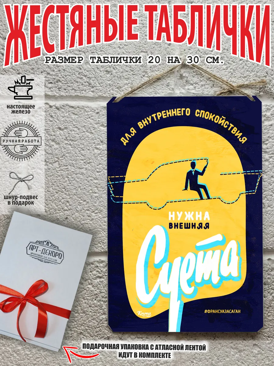 Обратите внимание! У нас все таблички идут сериями, можно создать отличную композицию в одном стиле. Кроме того, таблички это стильный и недорогой подарок по любому поводу. Прикольные штуки железная табличка картинки мотиваторы позитивные и демотиваторы из 100% металла от нашего бренда будет прекрасным украшением для квартиры, дома, офиса, бара или кафе. Мотивация это прикол, часть нашей жизни, картина мотиватор всегда улучшает настроение. Сочетая в себе эстетику и прочность, декоративная металлические мотивационные карточки являются непременным элементом декора как для внутренних помещений, так и для уличных зон. Выберите из нашего широкого ассортимента аксессуар, который подойдет именно вам. Жестяная табличка Арт-Декоро крепится на саморезы, шурупы или на специальный шнур из натурального джута который идет в комплекте с каждым заказом как бесплатный подарок, что позволяет разнообразить способы использования. Плакаты с приколами можно повесить на стену в гостиной, спальне, кухне или на улице, чтобы создать атмосферу, которая отражает индивидуальность. Таблички можно мыть, они не выцветают долгие годы. Картина открытки постер плакат стикеры наклейки приколы мотивация все это сочетается в наших изделиях. Мы гордимся тем, что каждое изделие изготовлено из настоящего металла, краска наносится прямо на железо. Это гарантирует ее долговечность и надежность. Красивая и изысканная отделка обеспечивает эффектный внешний вид и придает обстановке особое очарование. Подарите возможность добавить изюминку в интерьер и превратите пространство в уникальное, а также уютное место, которое будет отличаться от всех остальных. В нашем магазине Вы найдёте большой выбор декора интерьера и создадите превосходную обстановку.