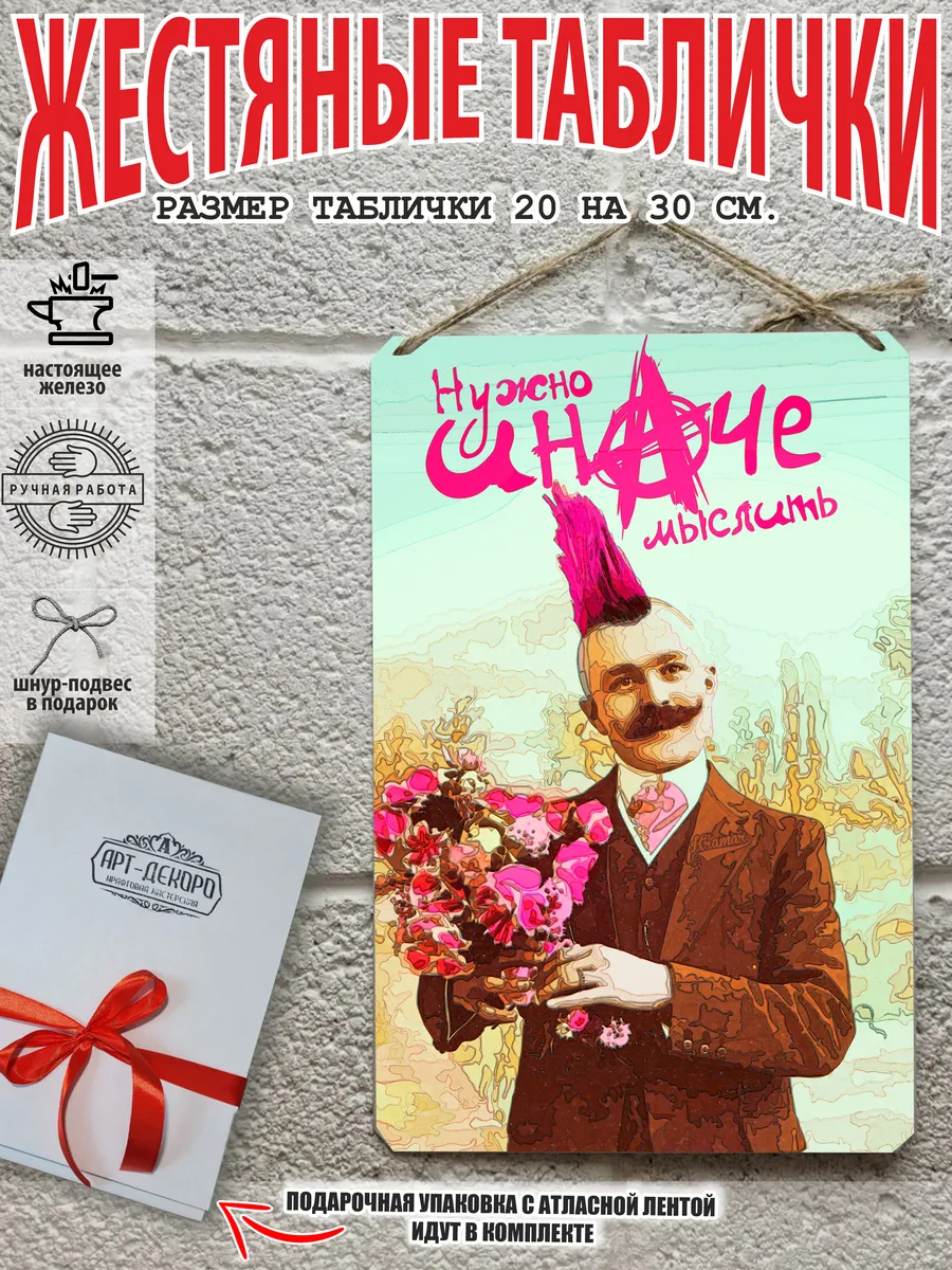 Обратите внимание! У нас все таблички идут сериями, можно создать отличную композицию в одном стиле. Кроме того, таблички это стильный и недорогой подарок по любому поводу. Прикольные штуки железная табличка картинки мотиваторы позитивные и демотиваторы из 100% металла от нашего бренда будет прекрасным украшением для квартиры, дома, офиса, бара или кафе. Мотивация это прикол, часть нашей жизни, картина мотиватор всегда улучшает настроение. Сочетая в себе эстетику и прочность, декоративная металлические мотивационные карточки являются непременным элементом декора как для внутренних помещений, так и для уличных зон. Выберите из нашего широкого ассортимента аксессуар, который подойдет именно вам. Жестяная табличка Арт-Декоро крепится на саморезы, шурупы или на специальный шнур из натурального джута который идет в комплекте с каждым заказом как бесплатный подарок, что позволяет разнообразить способы использования. Плакаты с приколами можно повесить на стену в гостиной, спальне, кухне или на улице, чтобы создать атмосферу, которая отражает индивидуальность. Таблички можно мыть, они не выцветают долгие годы. Картина открытки постер плакат стикеры наклейки приколы мотивация все это сочетается в наших изделиях. Мы гордимся тем, что каждое изделие изготовлено из настоящего металла, краска наносится прямо на железо. Это гарантирует ее долговечность и надежность. Красивая и изысканная отделка обеспечивает эффектный внешний вид и придает обстановке особое очарование. Подарите возможность добавить изюминку в интерьер и превратите пространство в уникальное, а также уютное место, которое будет отличаться от всех остальных. В нашем магазине Вы найдёте большой выбор декора интерьера и создадите превосходную обстановку.