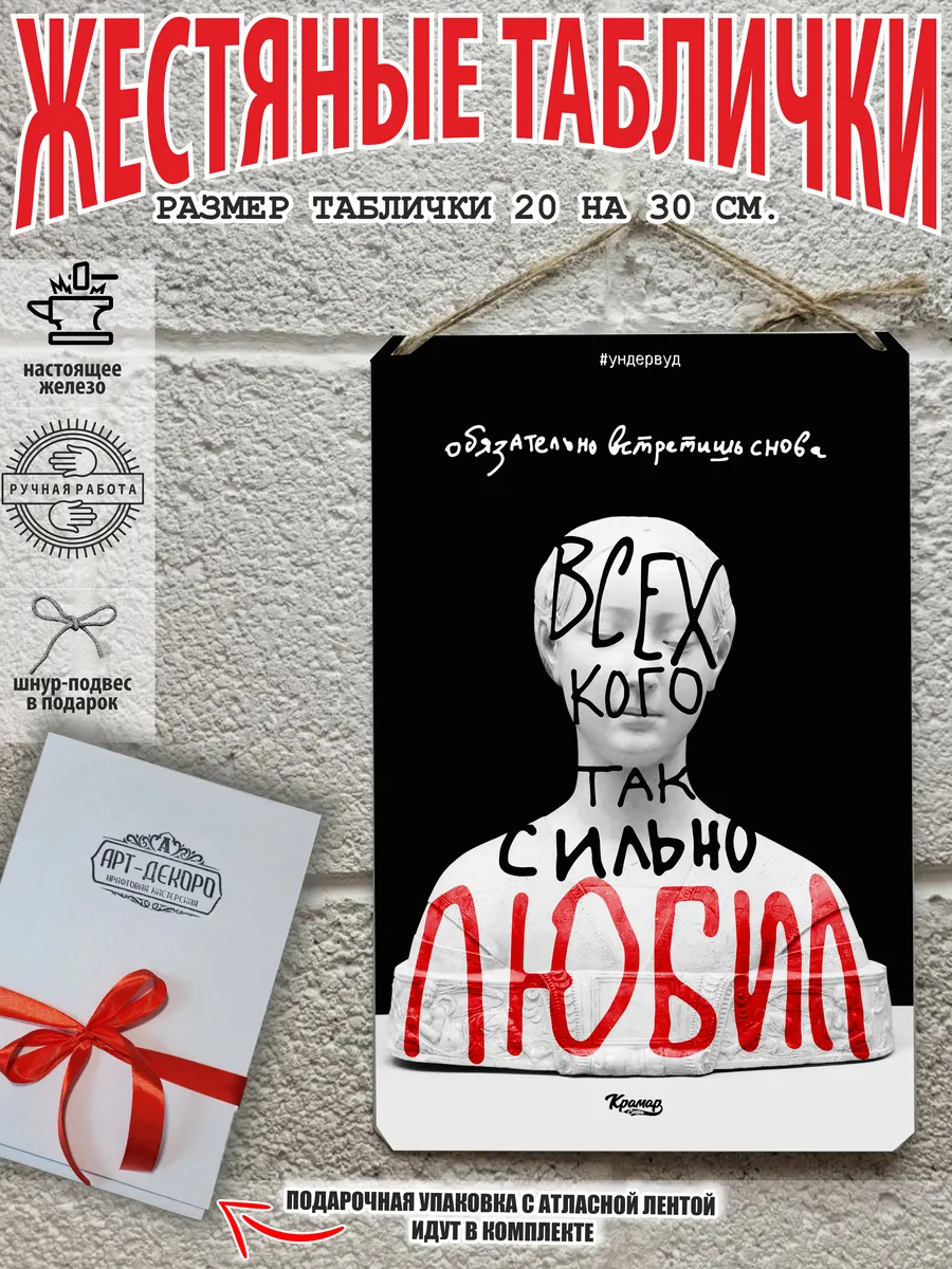 Постер «Обязательно встретишь всех кого так сильно любил» — это стильный и вдохновляющий элемент декора для вашего дома или офиса. Изготовленный из прочного металла, он отличается долговечностью и элегантным внешним видом. Постер с мотивационной темой станет отличным подарком для друзей и близких, а также поможет создать позитивную атмосферу в любом пространстве. Его можно повесить на стену с помощью прилагаемого шнура-подвеса из натурального джута, который придает изделию особый шарм. Постер упакован в экологичную картонную коробку, что делает его еще более привлекательным в качестве подарка.