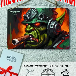 Готовый подарок для любителя компьютерных игр. Погрузитесь в мир Warhammer 40 000 с нашим постером, который изображён на жестяной табличке. Наши постеры — это жестяные таблички, выполнены из металла толщиной 0.5 мм, который отличается высоким качеством и долговечностью. Размер 20×30 см позволяет легко вписать наши картины в любой интерьер, будь то кухня, гостиная, офис или кафе. Почему стоит выбрать наш постер орки или тираниды, темные тамплиеры, сестры войны, тау, космический десант для интерьера? Яркие и насыщенные цвета не выгорают на солнце и делают ваше пространство выразительным и уникальным. Легкость в уходе: наши картины для интерьера, таблички на дверь и постеры на стену можно легко мыть. Они не боятся влаги, что позволяет использовать их как в помещениях, так и на улице. Удобные варианты крепления: табличка может быть установлена на саморезы, гвозди, кнопки, клейкую ленту, магниты или повешена на шнур из натурального джута, который идет в комплекте. Упаковка: каждая табличка аккуратно упакована в защитный пакет и дополнительно завернута в эко-картон, а также дополнительно в комплекте идет подарочная упаковка, атласная лента и открытка — что делает её отличным подарком на любой случай – от дня рождения до новоселья – готовый подарок. Мы гордимся тем, что предлагаем более 15 000 уникальных дизайнов, включая постеры на стену для интерьера танк вархамер, постер на заказ и прикольные металлические таблички, чтобы каждый мог найти что-то для себя. Наши постеры разделены на коллекции разных серий, что позволяет заказать несколько табличек в едином стиле и создать неповторимую композицию у вас дома, не упустите возможность сделать свой дом стильным – добавляйте товары в избранное, чтобы первыми узнавать о скидках и новинках! Создайте атмосферу уюта и стиля с нашими металлическими картинами и постерами для интерьера уже сегодня!