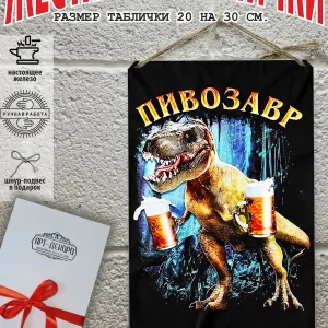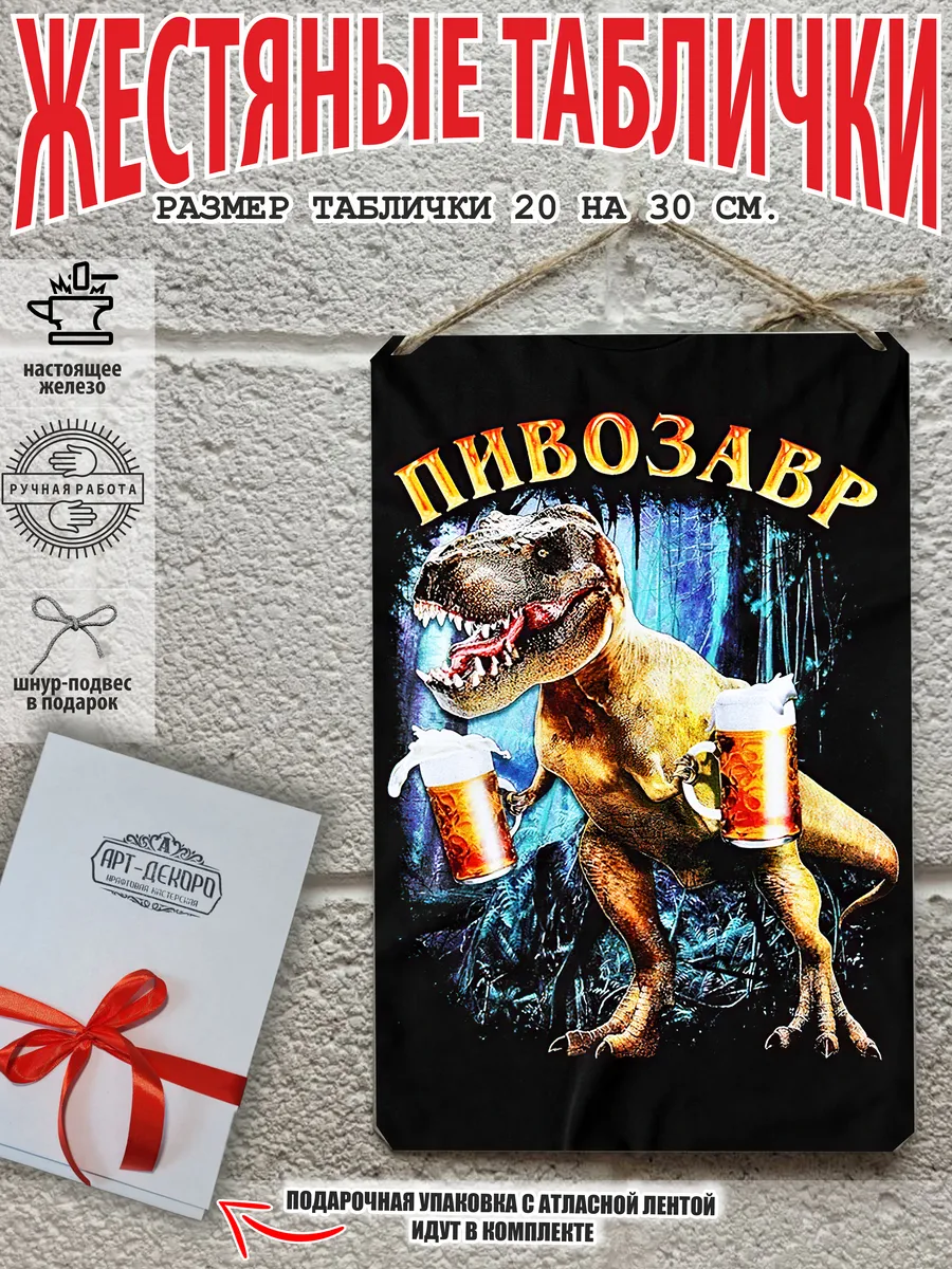 Табличка жестяная пиво алкогольное пивозавр домашняя пивоварня сочетает в себе эстетику и прочность, декоративная металлическая табличка является непременным элементом декора как для внутренних помещений, так и для уличных зон. Не боится влаги, можно мыть, не выцветает долгие годы. Выберите из нашего широкого ассортимента аксессуар, который подойдет именно вам.