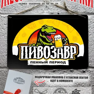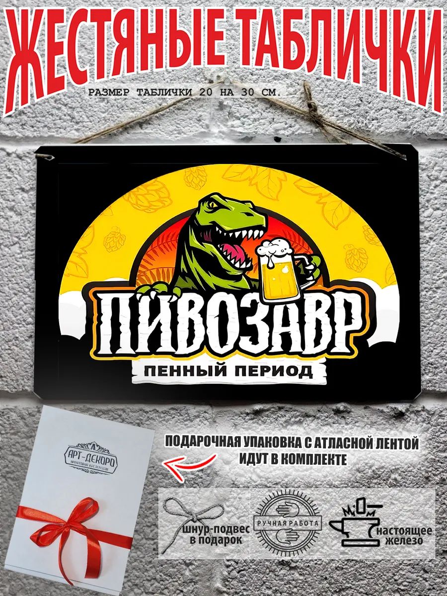 Табличка жестяная пиво алкогольное пивозавр домашняя пивоварня сочетает в себе эстетику и прочность, декоративная металлическая табличка является непременным элементом декора как для внутренних помещений, так и для уличных зон. Не боится влаги, можно мыть, не выцветает долгие годы. Выберите из нашего широкого ассортимента аксессуар, который подойдет именно вам.
