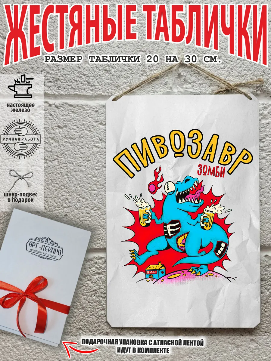 Табличка жестяная пиво алкогольное пивозавр домашняя пивоварня сочетает в себе эстетику и прочность, декоративная металлическая табличка является непременным элементом декора как для внутренних помещений, так и для уличных зон. Не боится влаги, можно мыть, не выцветает долгие годы. Выберите из нашего широкого ассортимента аксессуар, который подойдет именно вам.