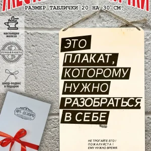 Обратите внимание! У нас все таблички идут сериями, можно создать отличную композицию в одном стиле. Кроме того, таблички это стильный и недорогой подарок по любому поводу. Прикольные штуки железная табличка картинки мотиваторы позитивные и демотиваторы из 100% металла от нашего бренда будет прекрасным украшением для квартиры, дома, офиса, бара или кафе. Мотивация это прикол, часть нашей жизни, картина мотиватор всегда улучшает настроение. Сочетая в себе эстетику и прочность, декоративная металлические мотивационные карточки являются непременным элементом декора как для внутренних помещений, так и для уличных зон. Выберите из нашего широкого ассортимента аксессуар, который подойдет именно вам. Жестяная табличка Арт-Декоро крепится на саморезы, шурупы или на специальный шнур из натурального джута который идет в комплекте с каждым заказом как бесплатный подарок, что позволяет разнообразить способы использования. Плакаты с приколами можно повесить на стену в гостиной, спальне, кухне или на улице, чтобы создать атмосферу, которая отражает индивидуальность. Таблички можно мыть, они не выцветают долгие годы. Картина открытки постер плакат стикеры наклейки приколы мотивация все это сочетается в наших изделиях. Мы гордимся тем, что каждое изделие изготовлено из настоящего металла, краска наносится прямо на железо. Это гарантирует ее долговечность и надежность. Красивая и изысканная отделка обеспечивает эффектный внешний вид и придает обстановке особое очарование. Подарите возможность добавить изюминку в интерьер и превратите пространство в уникальное, а также уютное место, которое будет отличаться от всех остальных. В нашем магазине Вы найдёте большой выбор декора интерьера и создадите превосходную обстановку.