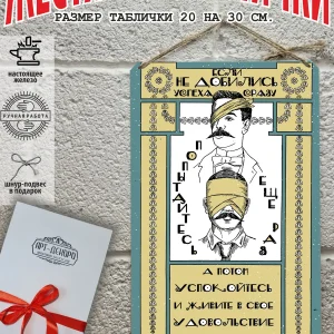 Обратите внимание! У нас все таблички идут сериями, можно создать отличную композицию в одном стиле. Кроме того, таблички это стильный и недорогой подарок по любому поводу. Прикольные штуки железная табличка картинки мотиваторы позитивные и демотиваторы из 100% металла от нашего бренда будет прекрасным украшением для квартиры, дома, офиса, бара или кафе. Мотивация это прикол, часть нашей жизни, картина мотиватор всегда улучшает настроение. Сочетая в себе эстетику и прочность, декоративная металлические мотивационные карточки являются непременным элементом декора как для внутренних помещений, так и для уличных зон. Выберите из нашего широкого ассортимента аксессуар, который подойдет именно вам. Жестяная табличка Арт-Декоро крепится на саморезы, шурупы или на специальный шнур из натурального джута который идет в комплекте с каждым заказом как бесплатный подарок, что позволяет разнообразить способы использования. Плакаты с приколами можно повесить на стену в гостиной, спальне, кухне или на улице, чтобы создать атмосферу, которая отражает индивидуальность. Таблички можно мыть, они не выцветают долгие годы. Картина открытки постер плакат стикеры наклейки приколы мотивация все это сочетается в наших изделиях. Мы гордимся тем, что каждое изделие изготовлено из настоящего металла, краска наносится прямо на железо. Это гарантирует ее долговечность и надежность. Красивая и изысканная отделка обеспечивает эффектный внешний вид и придает обстановке особое очарование. Подарите возможность добавить изюминку в интерьер и превратите пространство в уникальное, а также уютное место, которое будет отличаться от всех остальных. В нашем магазине Вы найдёте большой выбор декора интерьера и создадите превосходную обстановку
