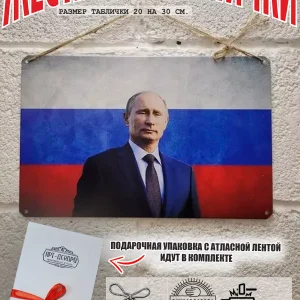 Декоративная табличка картина с портретом Владимира Владимировича Путина станет оригинальным украшением вашего интерьера или прекрасным подарком для ценителей истории и политики. Изготовленная из прочного металла, табличка 20 на 30 см. имеет прямоугольную форму и оснащена шнуром-подвесом для удобного размещения на стене. Табличка упакована в подарочную упаковку, что делает ее еще более привлекательным презентом.