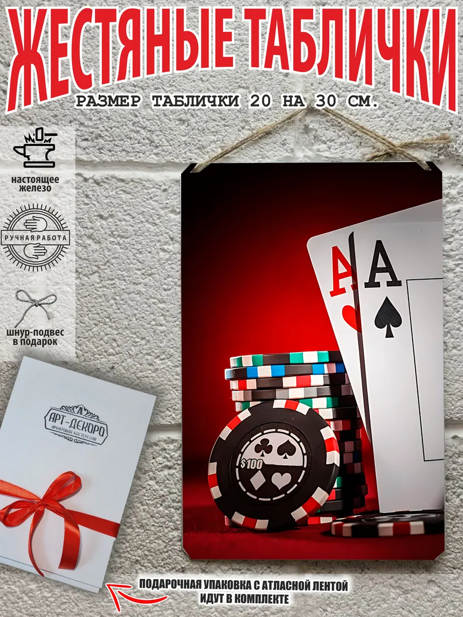 Представляем вам стильные и эффектные жестяные таблички с изображением игральных карт. Наши постеры — жестяные таблички покер, выполнены из металла, который отличается высоким качеством и долговечностью. Размер 20×30 см позволяет легко вписать наши картины в любой интерьер, будь то кухня, гостиная, офис или кафе. Почему стоит выбрать наш постер для интерьера? Яркие и насыщенные цвета не выгорают на солнце и делают ваше пространство выразительным и уникальным. Легкость в уходе: наши картины для интерьера, таблички блэк-джек покер мафия и постеры на стену виски и сигара можно легко мыть. Они не боятся влаги, что позволяет использовать их как в помещениях, так и на улице. Удобные варианты крепления: табличка может быть установлена на саморезы, гвозди, кнопки, клейкую ленту, магниты или повешена на шнур из натурального джута, который идет в комплекте. Упаковка: каждая табличка карта туз пики фэнтези красивые игральные карты колода казино аккуратно упакована в защитный пакет и дополнительно завернута в эко-картон, а также дополнительно в комплекте идет подарочная упаковка, атласная лента и открытка — что делает её отличным подарком на любой случай – от дня рождения до новоселья – готовый подарок. Мы гордимся тем, что предлагаем более 15 000 уникальных дизайнов, включая постеры на стену для интерьера, постер на заказ карты bicycle и прикольные металлические таблички, чтобы каждый мог найти что-то для себя. Наши постеры разделены на коллекции разных серий, что позволяет заказать несколько табличек в едином стиле и создать неповторимую композицию у вас дома, не упустите возможность сделать свой дом стильным – добавляйте товары в избранное, чтобы первыми узнавать о скидках и новинках! Создайте атмосферу уюта и стиля с нашими металлическими картинами и постерами для интерьера уже сегодня!