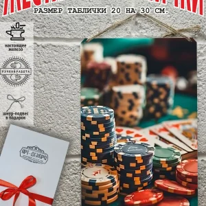 Представляем вам стильные и эффектные жестяные таблички с изображением игральных карт. Наши постеры — жестяные таблички покер, выполнены из металла, который отличается высоким качеством и долговечностью. Размер 20×30 см позволяет легко вписать наши картины в любой интерьер, будь то кухня, гостиная, офис или кафе. Почему стоит выбрать наш постер для интерьера? Яркие и насыщенные цвета не выгорают на солнце и делают ваше пространство выразительным и уникальным. Легкость в уходе: наши картины для интерьера, таблички блэк-джек покер мафия и постеры на стену виски и сигара можно легко мыть. Они не боятся влаги, что позволяет использовать их как в помещениях, так и на улице. Удобные варианты крепления: табличка может быть установлена на саморезы, гвозди, кнопки, клейкую ленту, магниты или повешена на шнур из натурального джута, который идет в комплекте. Упаковка: каждая табличка карта туз пики фэнтези красивые игральные карты колода казино аккуратно упакована в защитный пакет и дополнительно завернута в эко-картон, а также дополнительно в комплекте идет подарочная упаковка, атласная лента и открытка — что делает её отличным подарком на любой случай – от дня рождения до новоселья – готовый подарок. Мы гордимся тем, что предлагаем более 15 000 уникальных дизайнов, включая постеры на стену для интерьера, постер на заказ карты bicycle и прикольные металлические таблички, чтобы каждый мог найти что-то для себя. Наши постеры разделены на коллекции разных серий, что позволяет заказать несколько табличек в едином стиле и создать неповторимую композицию у вас дома, не упустите возможность сделать свой дом стильным – добавляйте товары в избранное, чтобы первыми узнавать о скидках и новинках! Создайте атмосферу уюта и стиля с нашими металлическими картинами и постерами для интерьера уже сегодня!