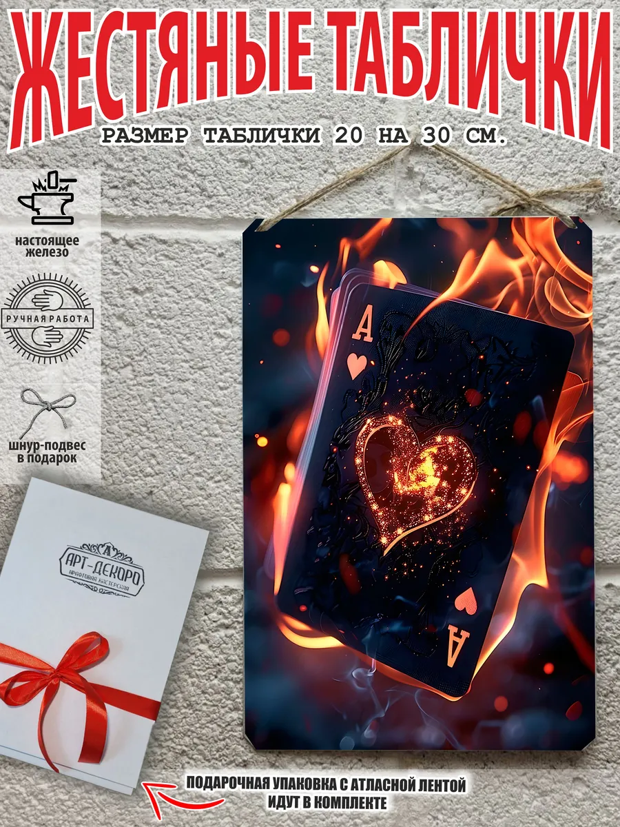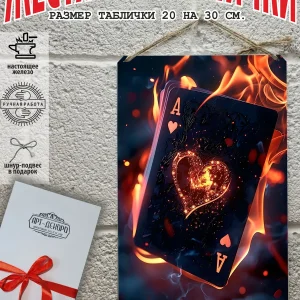 Представляем вам стильные и эффектные жестяные таблички с изображением игральных карт. Наши постеры — жестяные таблички покер, выполнены из металла, который отличается высоким качеством и долговечностью. Размер 20×30 см позволяет легко вписать наши картины в любой интерьер, будь то кухня, гостиная, офис или кафе. Почему стоит выбрать наш постер для интерьера? Яркие и насыщенные цвета не выгорают на солнце и делают ваше пространство выразительным и уникальным. Легкость в уходе: наши картины для интерьера, таблички блэк-джек покер мафия и постеры на стену виски и сигара можно легко мыть. Они не боятся влаги, что позволяет использовать их как в помещениях, так и на улице. Удобные варианты крепления: табличка может быть установлена на саморезы, гвозди, кнопки, клейкую ленту, магниты или повешена на шнур из натурального джута, который идет в комплекте. Упаковка: каждая табличка карта туз пики фэнтези красивые игральные карты колода казино аккуратно упакована в защитный пакет и дополнительно завернута в эко-картон, а также дополнительно в комплекте идет подарочная упаковка, атласная лента и открытка — что делает её отличным подарком на любой случай – от дня рождения до новоселья – готовый подарок. Мы гордимся тем, что предлагаем более 15 000 уникальных дизайнов, включая постеры на стену для интерьера, постер на заказ карты bicycle и прикольные металлические таблички, чтобы каждый мог найти что-то для себя. Наши постеры разделены на коллекции разных серий, что позволяет заказать несколько табличек в едином стиле и создать неповторимую композицию у вас дома, не упустите возможность сделать свой дом стильным – добавляйте товары в избранное, чтобы первыми узнавать о скидках и новинках! Создайте атмосферу уюта и стиля с нашими металлическими картинами и постерами для интерьера уже сегодня!