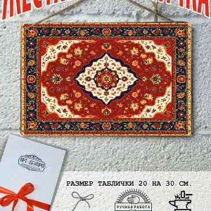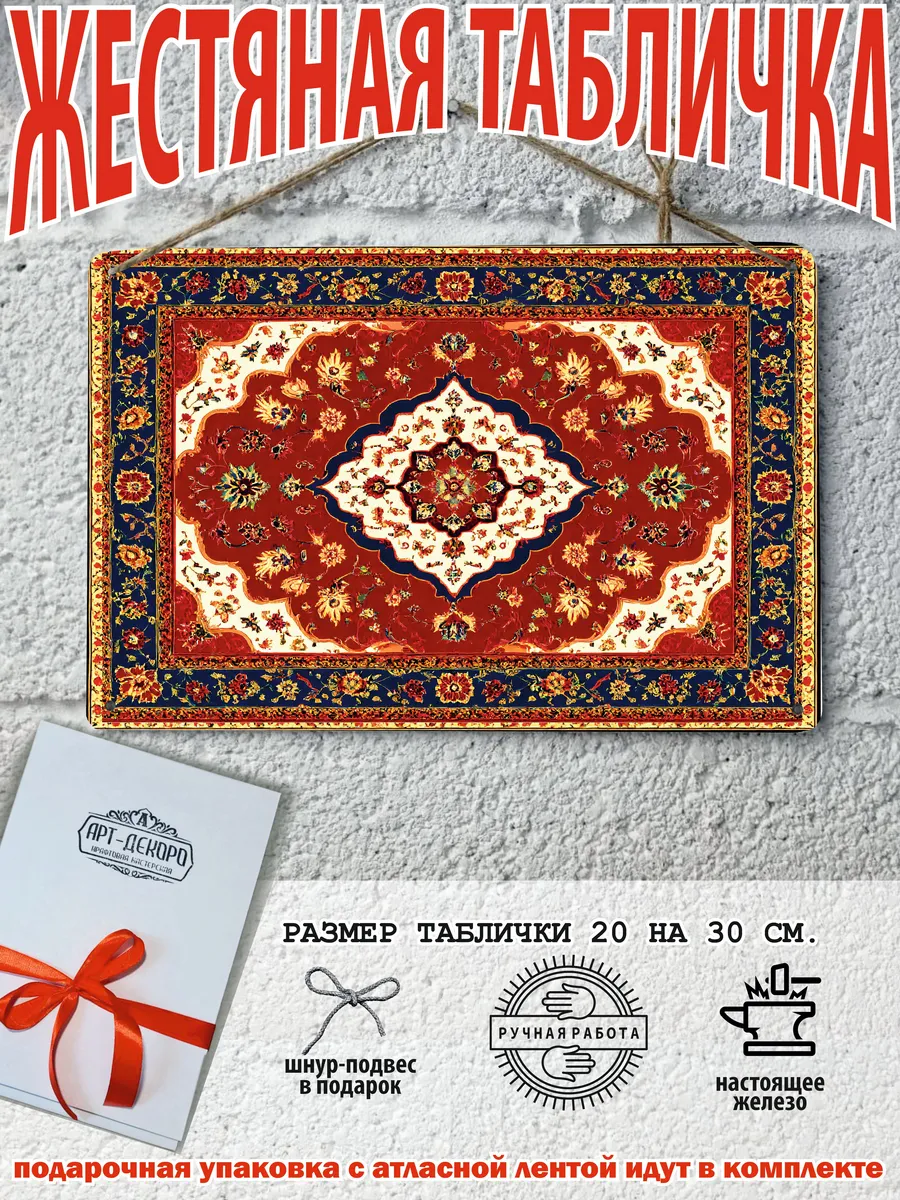 Ковер является многогранным символом: он олицетворяет уют и домашний очаг, а также выступает как оберег, отделяя мир человека от хаоса и защищая от зла. В культурном плане ковер символизирует статус и богатство, а в сказках — возможность путешествия и волшебства, например ковер-самолет. Каждый узор на ковре имеет свой смысл, от плодородия и долголетия до силы, мудрости и удачи, а центральный медальон может символизировать всевидящее око. В прошлом ковры были символом высокого социального положения, благосостояния и достатка. Узоры ковра, особенно центральный медальон, служат оберегом от зла и негативной энергии. Наша мастерская Арт-Декоро предлагает серию ковров на металлических табличках в стиле советских ковров в мини исполнении форматом 30 на 20 см. Такой ковер постер украсит рабочий стол, кухню, спальную, прихожую, гараж и любое место которое вы захотите. Наши постеры идут в комплекте с подарочной упаковкой, что делает его готовым подарком по любому поводу. Отличный подарок на день рождения для любителей советской эстетики. В комплекте так же идет шнур-подвес что упрощает его размещение на стене.