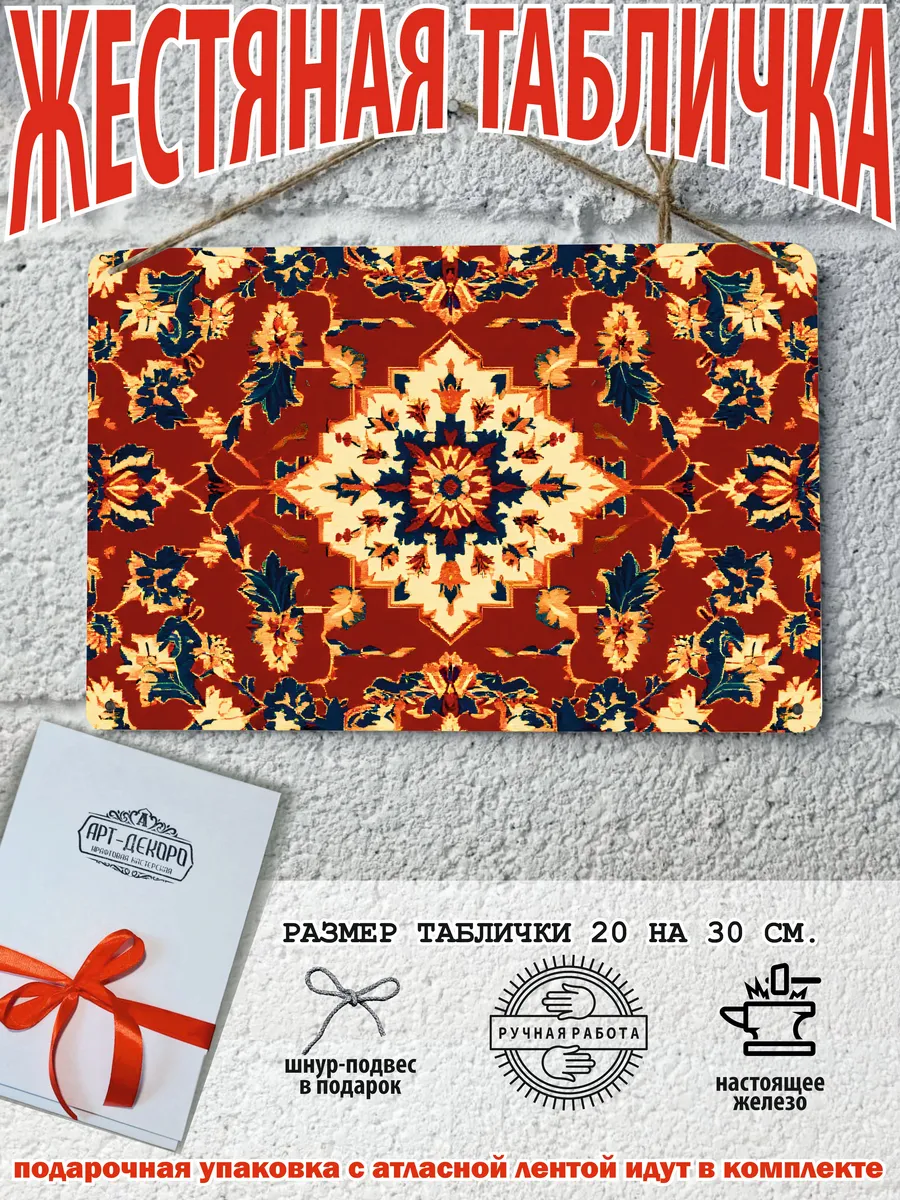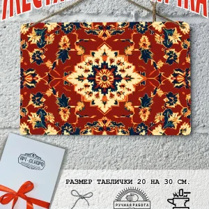 Ковер является многогранным символом: он олицетворяет уют и домашний очаг, а также выступает как оберег, отделяя мир человека от хаоса и защищая от зла. В культурном плане ковер символизирует статус и богатство, а в сказках — возможность путешествия и волшебства, например ковер-самолет. Каждый узор на ковре имеет свой смысл, от плодородия и долголетия до силы, мудрости и удачи, а центральный медальон может символизировать всевидящее око. В прошлом ковры были символом высокого социального положения, благосостояния и достатка. Узоры ковра, особенно центральный медальон, служат оберегом от зла и негативной энергии. Наша мастерская Арт-Декоро предлагает серию ковров на металлических табличках в стиле советских ковров в мини исполнении форматом 30 на 20 см. Такой ковер постер украсит рабочий стол, кухню, спальную, прихожую, гараж и любое место которое вы захотите. Наши постеры идут в комплекте с подарочной упаковкой, что делает его готовым подарком по любому поводу. Отличный подарок на день рождения для любителей советской эстетики. В комплекте так же идет шнур-подвес что упрощает его размещение на стене.