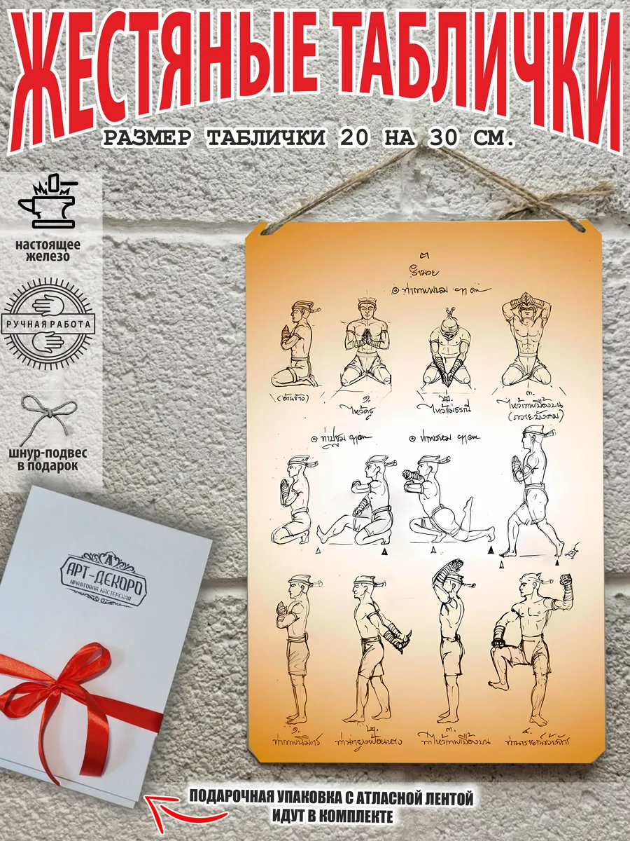 Ищете, чем украсить ваше пространство? Представляем серию металлических картин с изображениями известных бойцов муай тай, икон восточных единоборств и искусством восьми конечностей! Каждая табличка выполнена из 100% качественного металла, имеет классический размер 20×30 см и славится долговечностью — она не выгорает и сохраняет яркость цветов на протяжении долгих лет.
