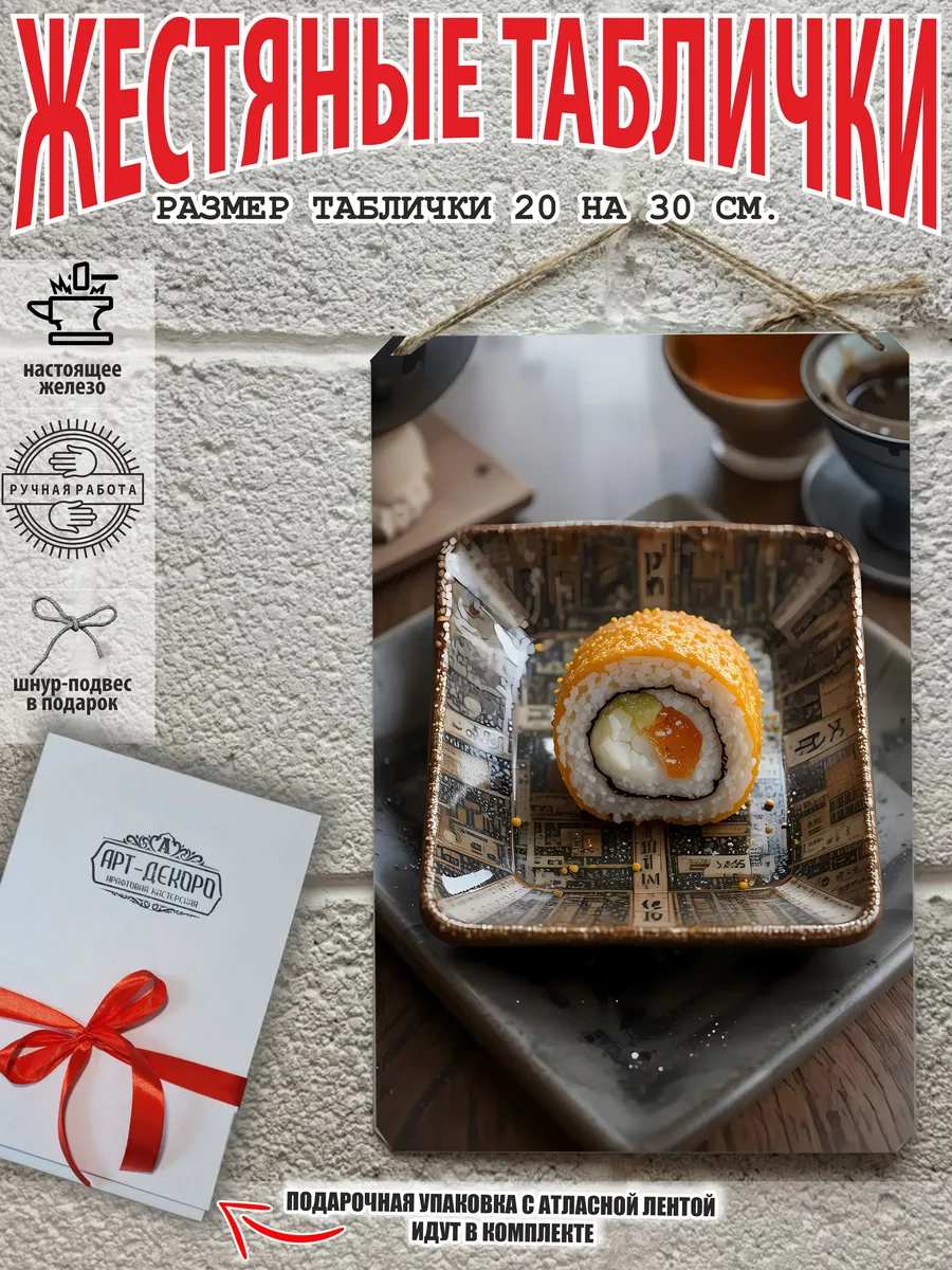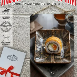 Тематическая интерьерная картина Суши Роллы выполнена из 100% металла, с классическим размером 20 на 30 см придаст вашей кухни или вашему ресторану особый смысл.