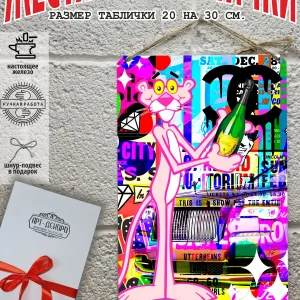Постер на металле розовая пантера граффити стрит-арт